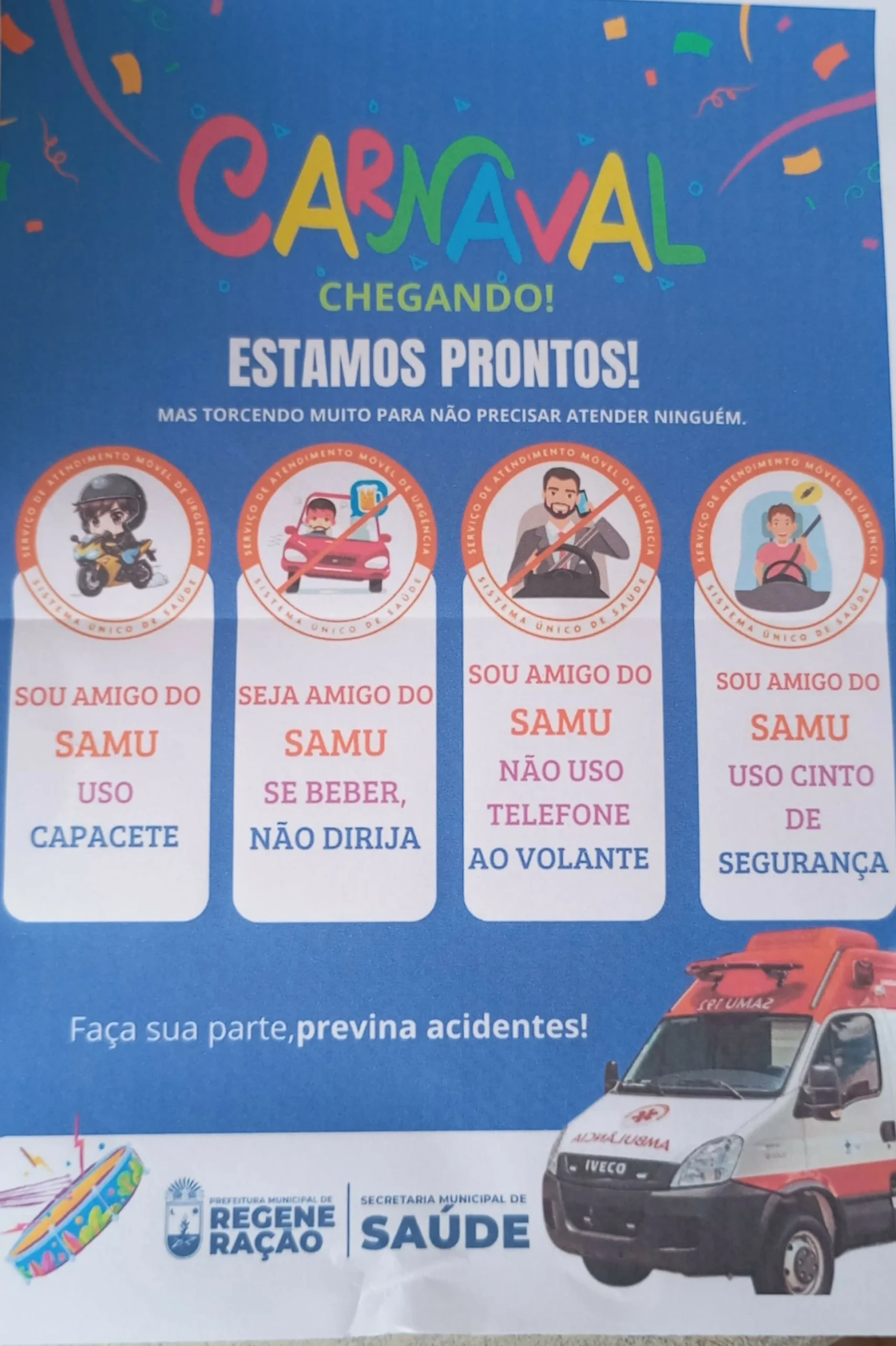 Com a chegada do Carnaval, o SAMU afirma estar pronto para atender qualquer emergência, mas reforça que o desejo maior é não precisar atuar. A prevenção é a melhor forma de manter todos em segurança e garantir que a folia seja de alegria, não de acidentes.