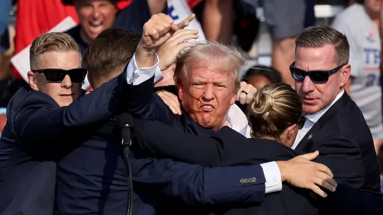 Em uma reação muito rápida e espontânea Trump se abaixou ao ouvir os disparos. Ao se levantar o ex-presidente estava com uma orelha e o rosto sujos de sangue.