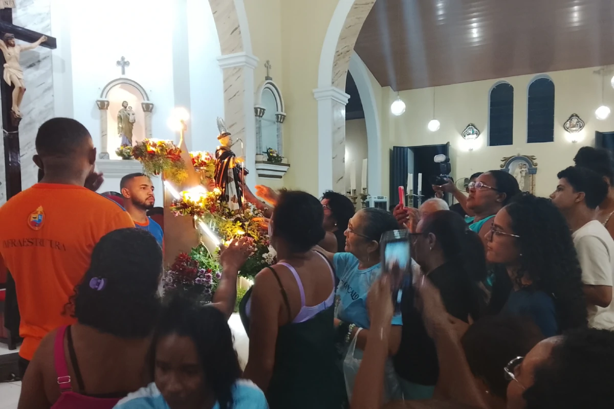 Após a missa, os devotos se reuniram na barraca da paróquia para saborear comidas típicas, participar de leilões e prestigiar apresentações musicais. A noite foi animada pelo cantor Pusaia, que trouxe alegria aos festejos.