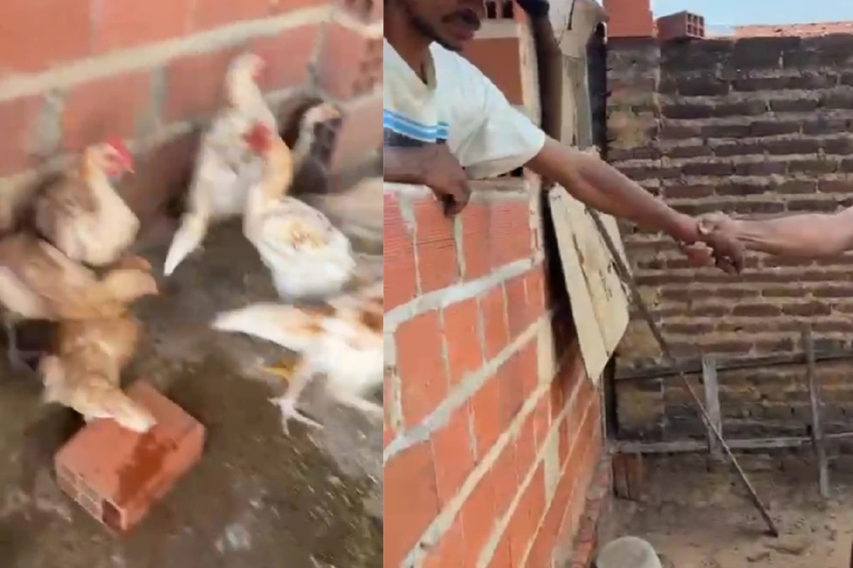 Ao chegar ao quintal, a esposa e o proprietário da residência se depararam com o suspeito com a mão na massa, já dentro do galinheiro. Em uma atitude corajosa, o homem conseguiu segurar o ladrão pelo braço, mantendo-o contido até a chegada da polícia – mesmo separados por uma parede, o dono da casa manteve o acusado imobilizado por uma das mãos.