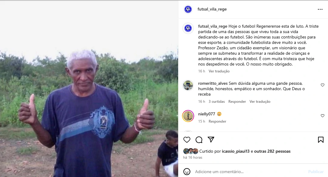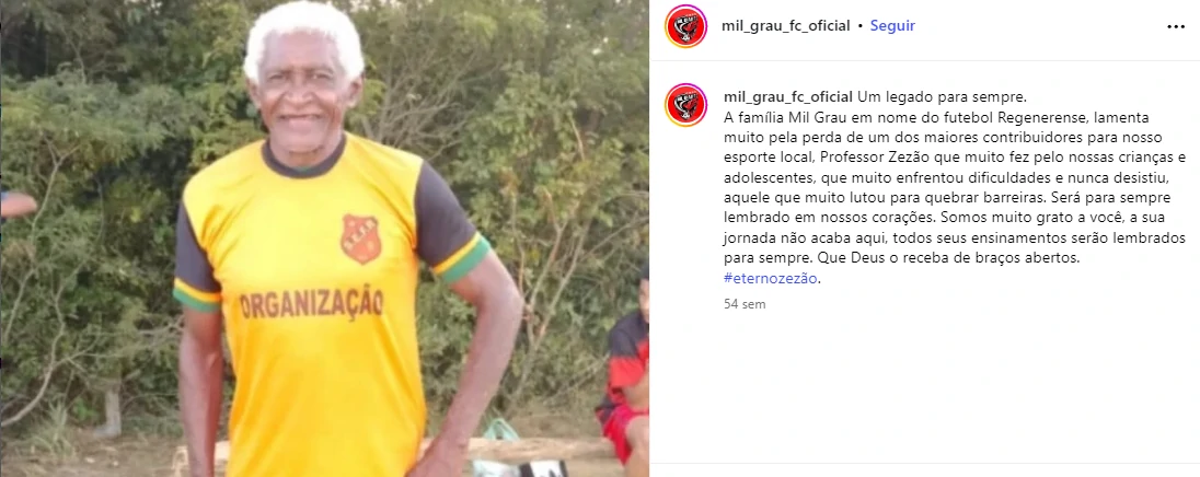 O futebol regenerense está de luto. Morreu neste sábado, 03 de agosto, o desportista Zé da Cruz Santos, mais conhecido em Regeneração como Zezão. Nascido e criado na comunidade Caraíbas, Zona Rural de Regeneração, a vida desse homem foi marcada por uma paixão inabalável e dedicação ao desenvolvimento do futebol feminino, embora seu legado vá muito além futebol de mulheres.