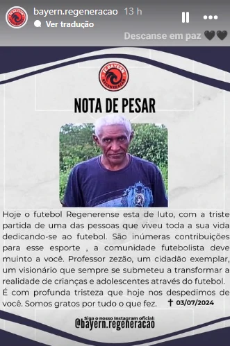 Carlão: “Perdemos um grande amigo e um verdadeiro pilar do futebol de Regeneração. Zezão dedicou sua vida ao futebol de Regeneração, as crianças, mulheres, formar jogadores, ele vai fazer muita falta”