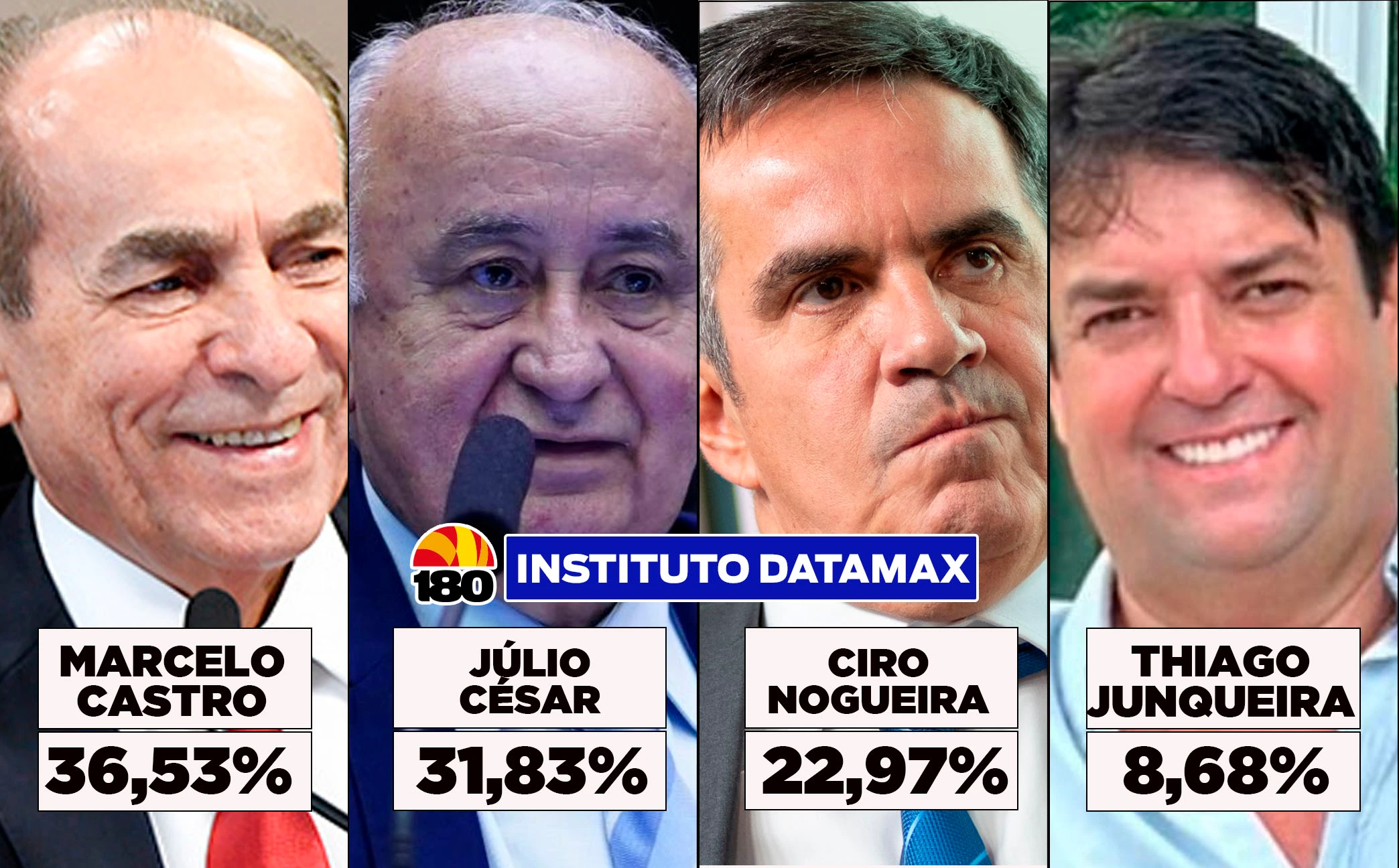 Em votos válidos, Castro aparece com entre 36,53% e 41,68%, enquanto Júlio César oscila entre 31,83% e 36,53%. Os representantes do campo bolsonarista aparecem bem atrás: o ex-ministro Ciro Nogueira tem cerca de 23% no cenário principal, e o deputado federal Tiago Junqueira (PL) fica entre 8,68% e 11,10%.